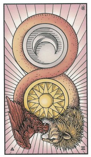 This the first assignment number of the Cups suit. Unlike Wands, with the Fire element, Cups, with the water element, has a lot more patience. Water is by nature more introspective, and this second card in the Cups suit is indeed about exploring yourself. The outcome is uncertain as always, but it usually results in better acceptance of yourself.