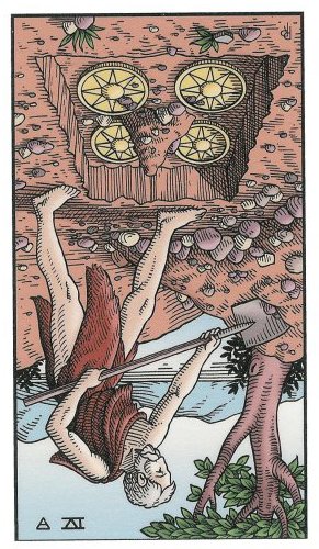 If a card is upside down, that is the common notation for the opposite meaning of the card, also known as the "negative" or "reversed" meaning of the card.