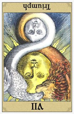 During the prevous card, The Lovers, all the wisdom of the first cards in the deck has been processed and a choice was made for personal growth. Now it's time to do something with all this baggage, to actually travel the road. A lot has been done so far, wisdoms have been accumulated and integrated into one's personality.