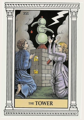 The card of The Tower goes by different names in different Tarot games. Some call it The Tower of Destruction, or The House of God, or Tower of the Light.
