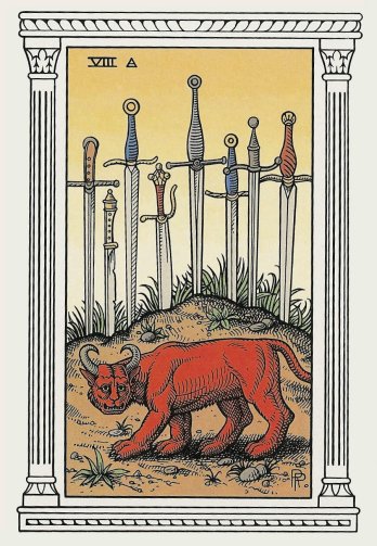 The 8 of Swords is about slowly regaining strength and energy. The 8 is an assignment number, and in the element of Swords it's a bit harder than usual.