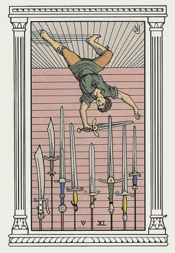 The 9 of Swords represents relief from cropped-up grief. The number 9 is a number of reward and rest and accomplishment. In the element of Swords there is not a lot of time for rest, but without any rest you'd just burn yourself out.