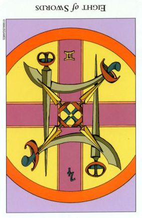 The 8 of Swords is about slowly regaining strength and energy. The 8 is an assignment number, and in the element of Swords it's a bit harder than usual.