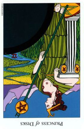 Pages explore and gather information about the road ahead, with an almost naive attitude. The Page of Pentacles is sometimes described as a bridge builder; Pentacles is the suit where the actual work is done, and the Page here enables those that follow to quickly cross difficult terrain.