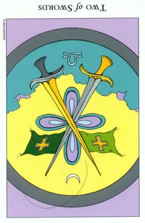 The 2 is an assignment number in tarot, and in this case of the 2 of Swords, it's about being forced to wait for something, often even while blindfolded in some sense.