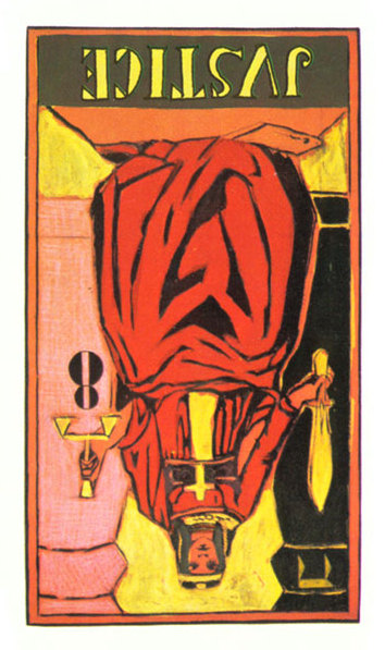 In the Rider-Waite deck, the cards for Justice and Strenght have swapped places, because Waite saw links between the cards and the astrological signs Leo and Libra.