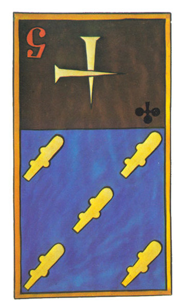 The 5 of Wands represents competition. The 5 is the second assignment number, and therefore a difficult card. 5 combined with the Wand's element fire challenges you. You'll have to fight hard for your idea, but you stand a good chance of succeeding.