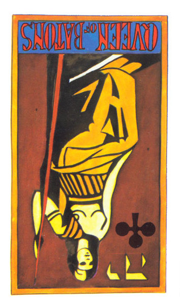 The King of Wands uses the properties of Wands (vitality, optimism, enthousiasm) to go out with confidence. He is seen as a leader with charisma.