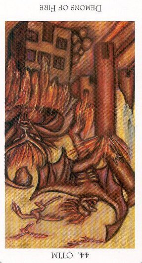 The number and element of this card (4=structure, element=fire) are in sync because fire can use the stability of structure, and structure can use the liveliness of fire. Here the structure of 4 doesn't cause stagnation.