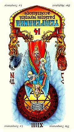 With Death, an important decision made with The Hanged Man was given shape by letting go of the old. Now you're in a transitionary period and this Temperance card is a place of rest during the journey through the underworld.