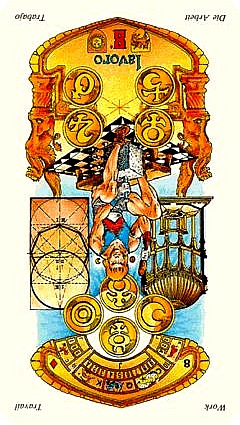 The 8 of Pentacles is about keeping up the hard work you're doing, and trying to be happy about doing that work at the same time. While the 3 of Pentacles is about completing a masterpiece, the 8 of Pentacles is about doing the apprentice work that makes you a master of your trade.