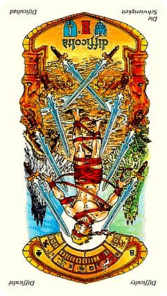 The 8 of Swords is about slowly regaining strength and energy. The 8 is an assignment number, and in the element of Swords it's a bit harder than usual.