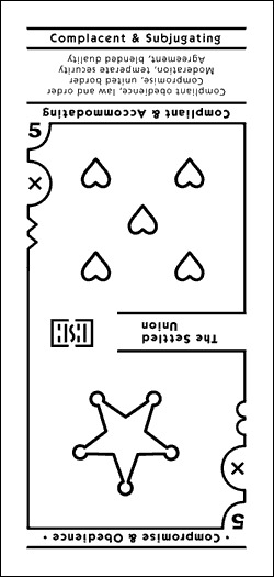 The number this card carries is 15, composed that is 6. The resemblances to the first '6' card (The Lovers) are remarkable; in both cards security is a central theme.