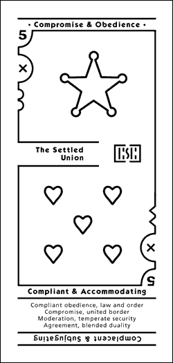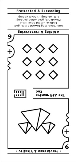 The number this card carries is 15, composed that is 6. The resemblances to the first '6' card (The Lovers) are remarkable; in both cards security is a central theme.