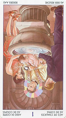 The number 1, associated with this Ace card, is the number of a fresh start with yet more new impulses coming your way. It might be compared to The Fool, the first card of the major arcana.