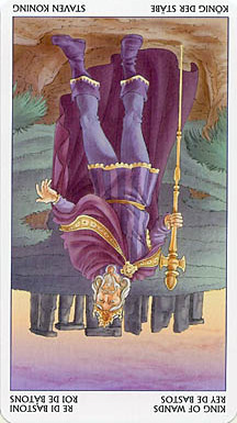 The King of Wands uses the properties of Wands (vitality, optimism, enthousiasm) to go out with confidence. He is seen as a leader with charisma.