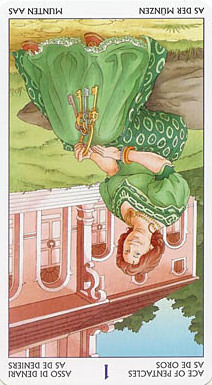 When this card falls, it might serve to point your attention to whatever is new and fresh in your life; a new job, study, love relation, business relation, project, etc. Look to the other cards in the reading to see what more can be said about it.