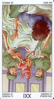 The World carries the number 21. As a composed number that is 3. The World is the third 3 in the Major Arcana. 3 is a reward number, so the third 3 must be even more powerful.