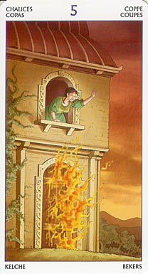 The 5 of Cups is about overcoming sadness and disappointment. You've let go of your old securities to embrace the new and exciting, now something has gone awry and you feel bad about that. But don't forget to notice those things that did go right.