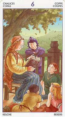 The 6 of Cups is about having confidence in something. It is the number of security and harmony. In the suit of Cups this means to be in harmony with yourself.