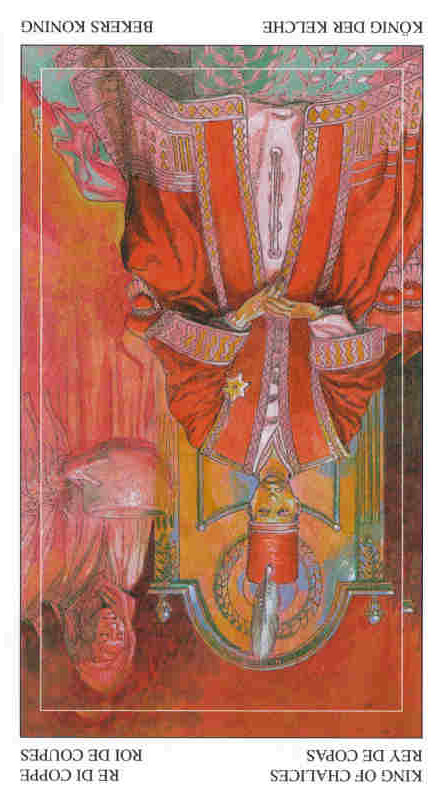 The King of Cups uses his intuition to achieve his ideals. Since Cups are turned inward, and Kings turned to the outside world, this card might be a difficult one, or it could be a powerful one.