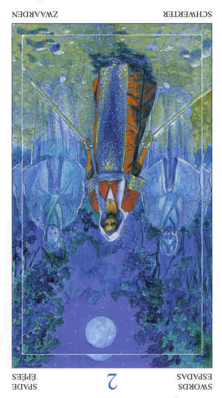The 2 is an assignment number in tarot, and in this case of the 2 of Swords, it's about being forced to wait for something, often even while blindfolded in some sense.