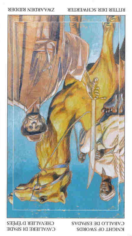 The Knight of Swords lacks the naivety of the Knight of Wands, he has analyzed the terrain ahead and weighed his options there. He knows what his own nature can throw into the mix, but does not let himself be held idle by that. The activities ahead will likely include the solving of conflicts and problems on your road to your ideal.