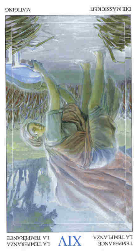With Death, an important decision made with The Hanged Man was given shape by letting go of the old. Now you're in a transitionary period and this Temperance card is a place of rest during the journey through the underworld.