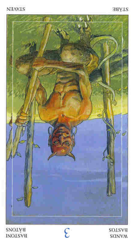 If a card is upside down, that is the common notation for the opposite meaning of the card, also known as the "negative" or "reversed" meaning of the card.