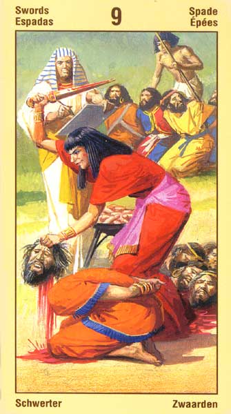 The 9 of Swords represents relief from cropped-up grief. The number 9 is a number of reward and rest and accomplishment. In the element of Swords there is not a lot of time for rest, but without any rest you'd just burn yourself out.