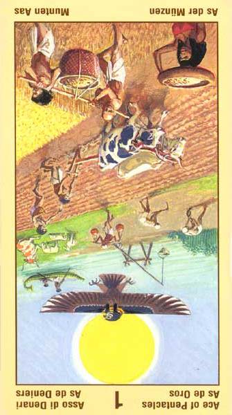 When this card falls, it might serve to point your attention to whatever is new and fresh in your life; a new job, study, love relation, business relation, project, etc. Look to the other cards in the reading to see what more can be said about it.