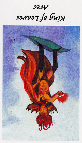 The King of Wands uses the properties of Wands (vitality, optimism, enthousiasm) to go out with confidence. He is seen as a leader with charisma.