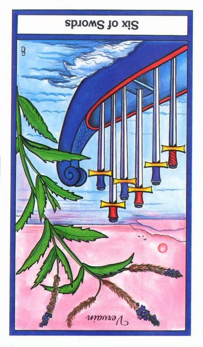 The 6 of Swords is a reward number after the hard assignment in 5 of Swords, it brings you to a safe place to rest a bit.