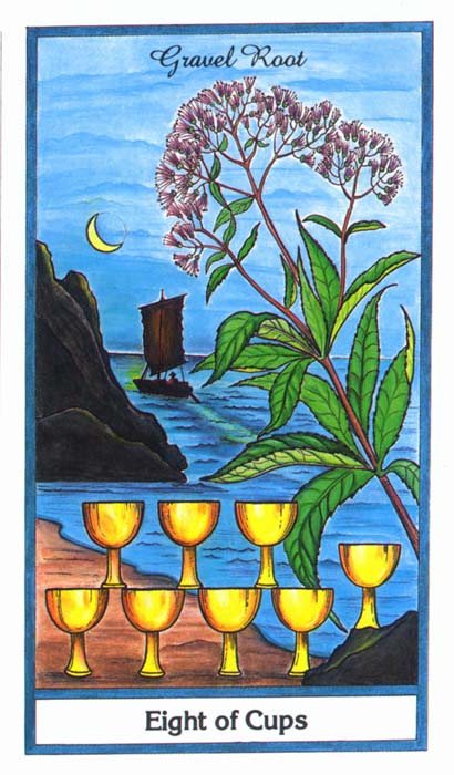 8 is an assignment number, and in the suit of Cups, it is about overcoming the urge to sink into depression caused by view on the long road ahead.