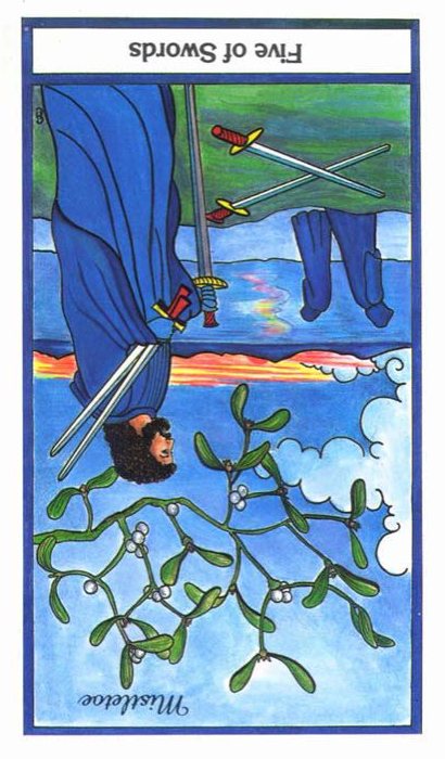 The 5 of Swords is about facing reality. The 5 is an assignment number, and in the slighly more difficult suit of Swords, it means you face a difficult challenge where your past experiences could hold you down.