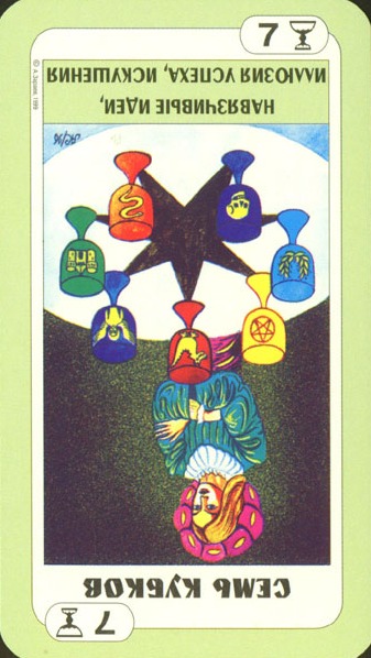 The King of Cups uses his intuition to achieve his ideals. Since Cups are turned inward, and Kings turned to the outside world, this card might be a difficult one, or it could be a powerful one.
