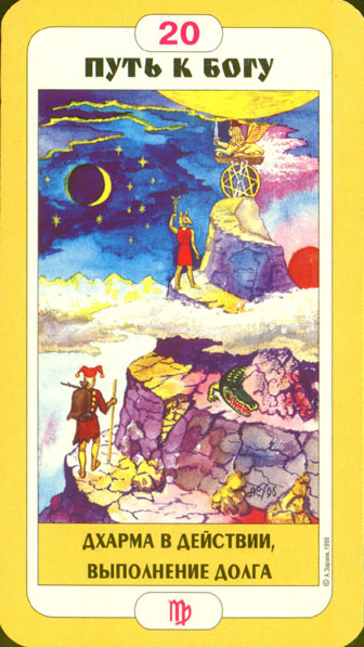 This card falls when you've completed all assignments, overcome all obstacles and are completely at peace with yourself due to your accomplishments. Yet Tarot wouldn't be Tarot if it didn't challenge you to enter entirely new worlds and start the process all over again.