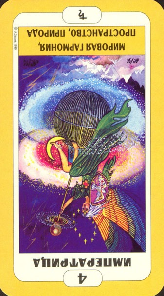 This card falls when you've completed all assignments, overcome all obstacles and are completely at peace with yourself due to your accomplishments. Yet Tarot wouldn't be Tarot if it didn't challenge you to enter entirely new worlds and start the process all over again.