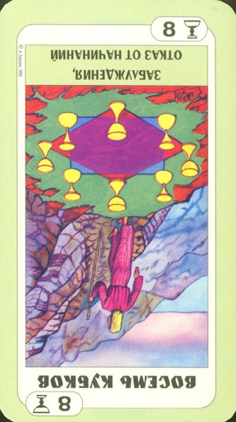 8 is an assignment number, and in the suit of Cups, it is about overcoming the urge to sink into depression caused by view on the long road ahead.