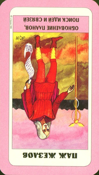If a card is upside down, that is the common notation for the opposite meaning of the card, also known as the "negative" or "reversed" meaning of the card.