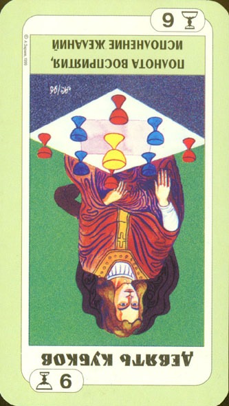With the 4, the second cycle of this suit is commenced, where a choice between structure and feeling has to be made, where old securities have to be let go of to work towards a new future. But like Wands, Cups don't like structure much, they prefer to be free and dream rather than to make commitments and go for something.