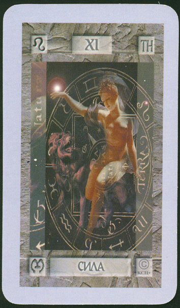 This card carries the number 11. In the Rider-Waite deck, Strength and Justice have swapped places because Waite saw links with the astrological signs Leo and Libra.