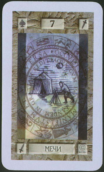 The 7 of Swords is about making slow progress because you can't trust the situation and/or people around you.