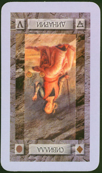 If a card is upside down, that is the common notation for the opposite meaning of the card, also known as the "negative" or "reversed" meaning of the card.