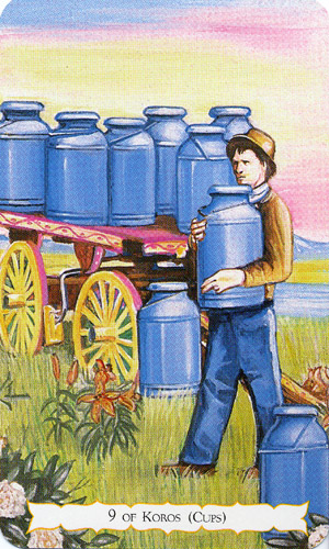 The 9 of Cups represents achievement and contentment. It is an excellent time to take some rest and enjoy yourself.