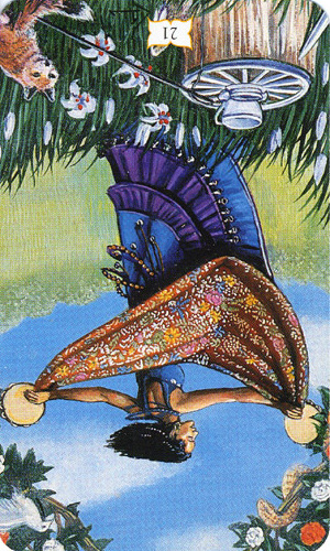 The World carries the number 21. As a composed number that is 3. The World is the third 3 in the Major Arcana. 3 is a reward number, so the third 3 must be even more powerful.
