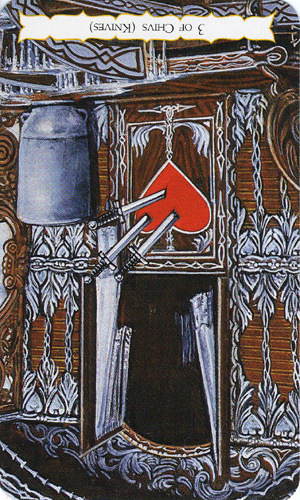 If a card is upside down, that is the common notation for the opposite meaning of the card, also known as the "negative" or "reversed" meaning of the card.