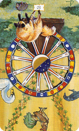 With the Wheel of Fortune, the second major cycle of Tarot commences. The first cycle in the first cards of the deck was about development as a child, accumulating wisdoms and integrating them into your personality. This second cycle is about your development as an adult. It is a more demanding cycle. You'll have to see if you can face what the world throws at you.