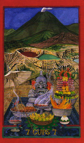 The 7 of Cups is about making a choice between different ideals. But Cups, with the water element, don't like making definitive choices that much, making this 7 in this suit a bit of a hard choice.