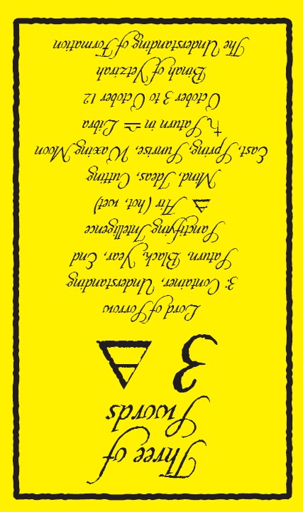 The King of Swords rules with diplomacy and a strong sense of responsibility, not just for himself but also for those around him, yet he is not afraid to make heavy decisions that compel him to eliminate dangers and dangerous opponents with some force.